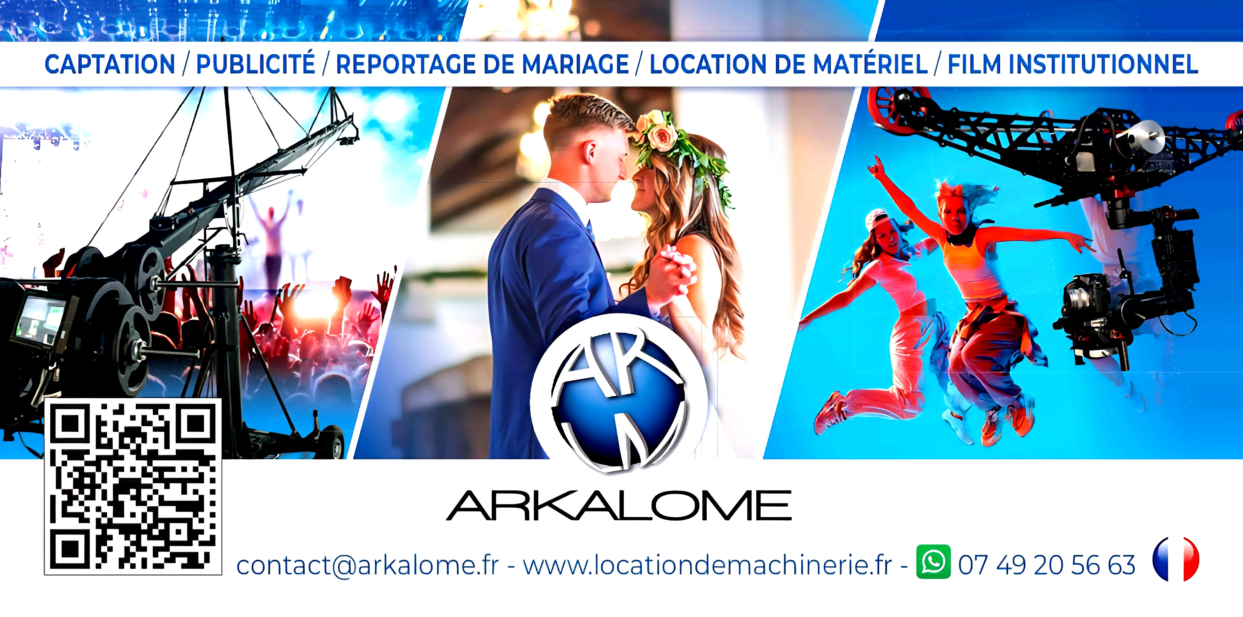 ARKALOME, acteur reconnu dans l'audiovisuel et dans la location de grue vidéo, est présent sur les réseaux sociaux, possède un site internet et mène des campagnes publicitaires pour promouvoir ses services et produits auprès d’un large public.